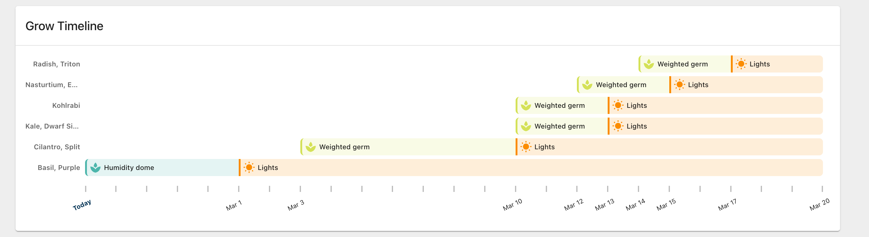 We’ve made a huge improvement to the grow timelines seen on each order’s page. The old timeline only shows the start and end of each planting assigned to the order. Now the timeline shows all production stages for each planting in an order. This makes it much easier for you to see the production timeline for an order!